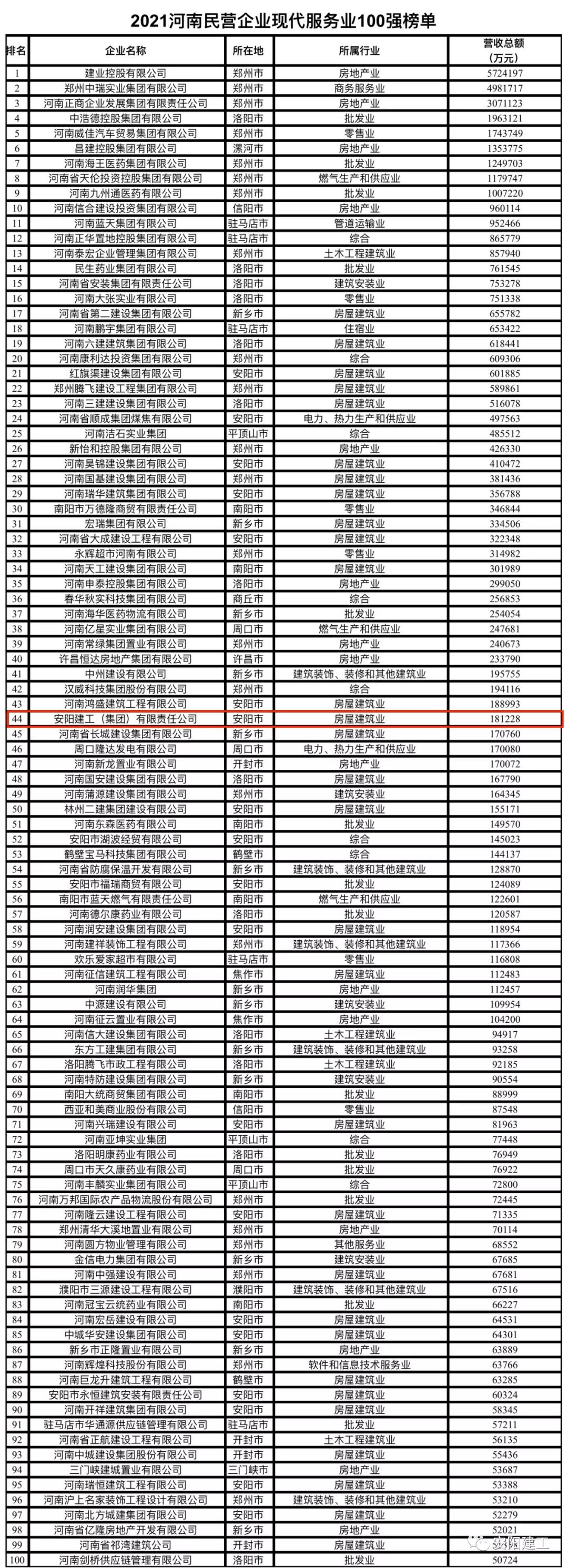 喜報!我公司榮獲河南省2021河南民營企業現代服務業100強