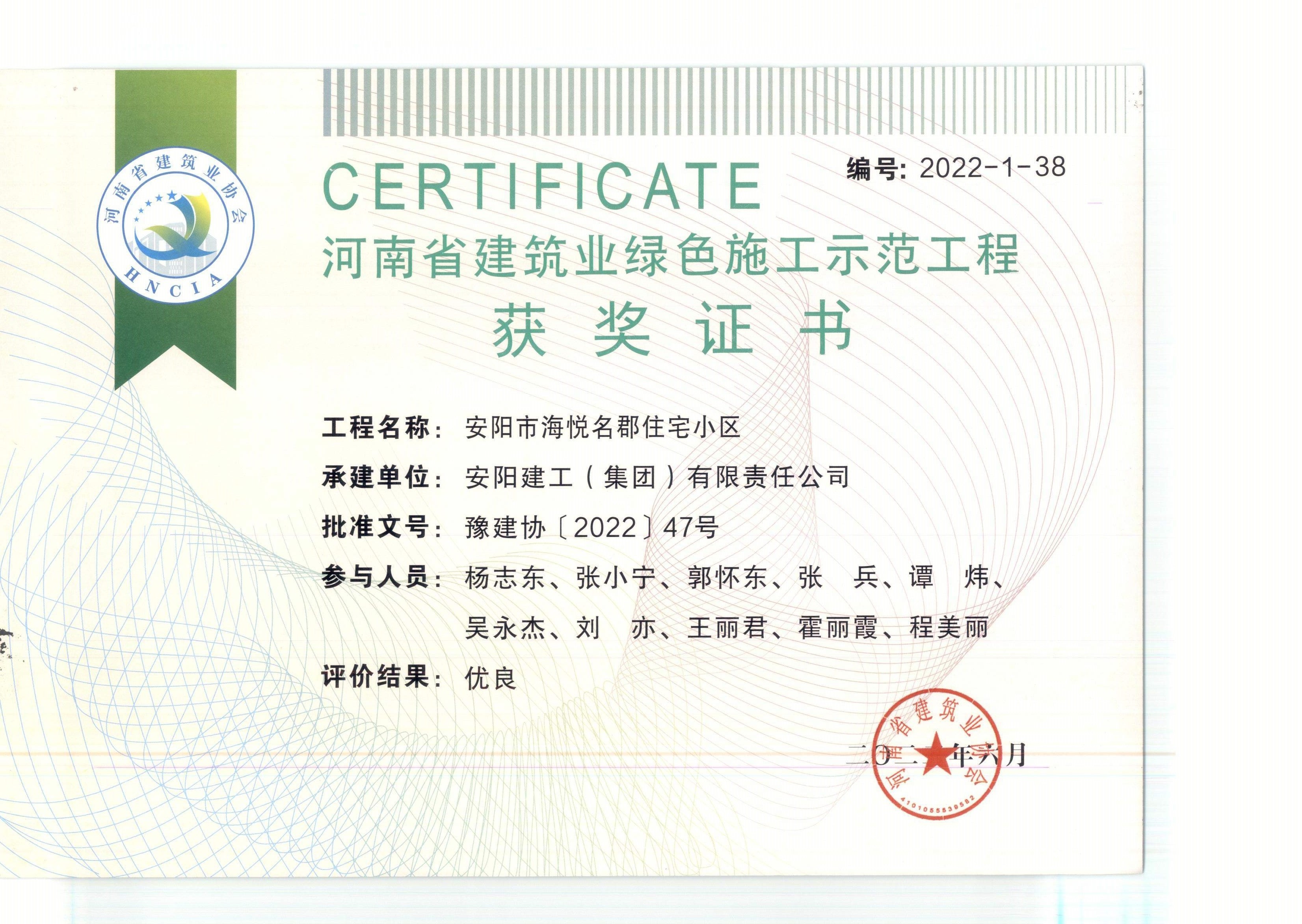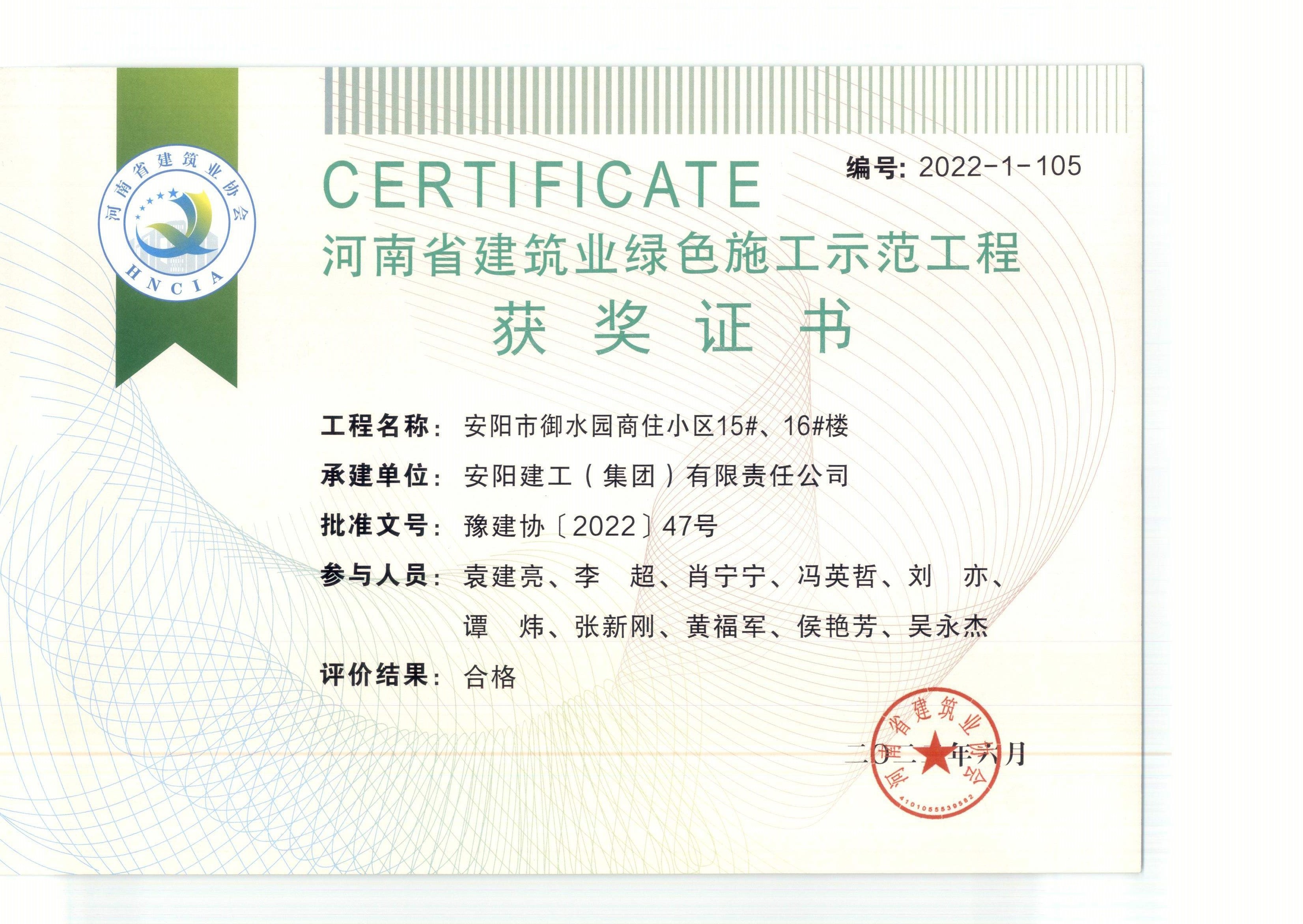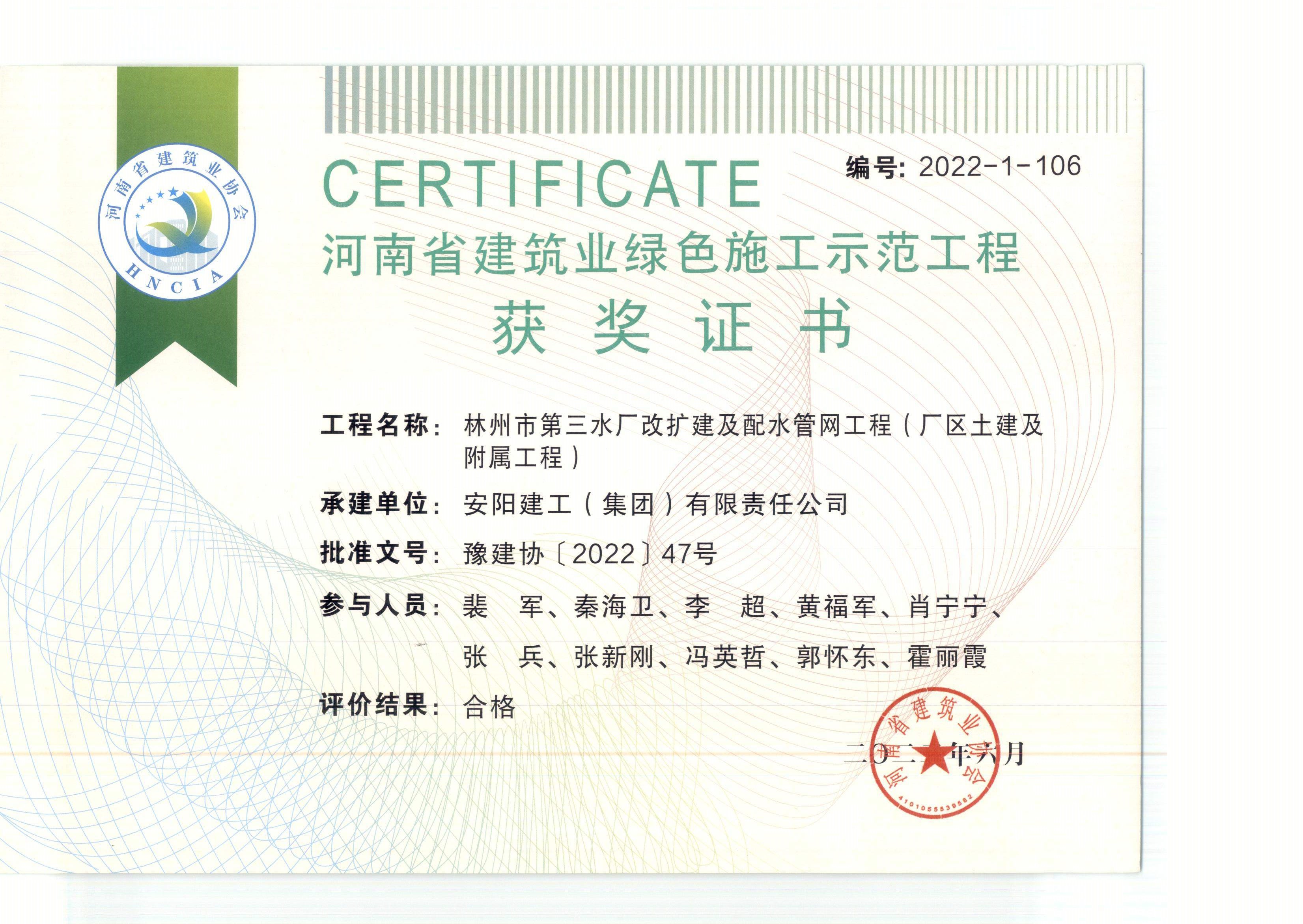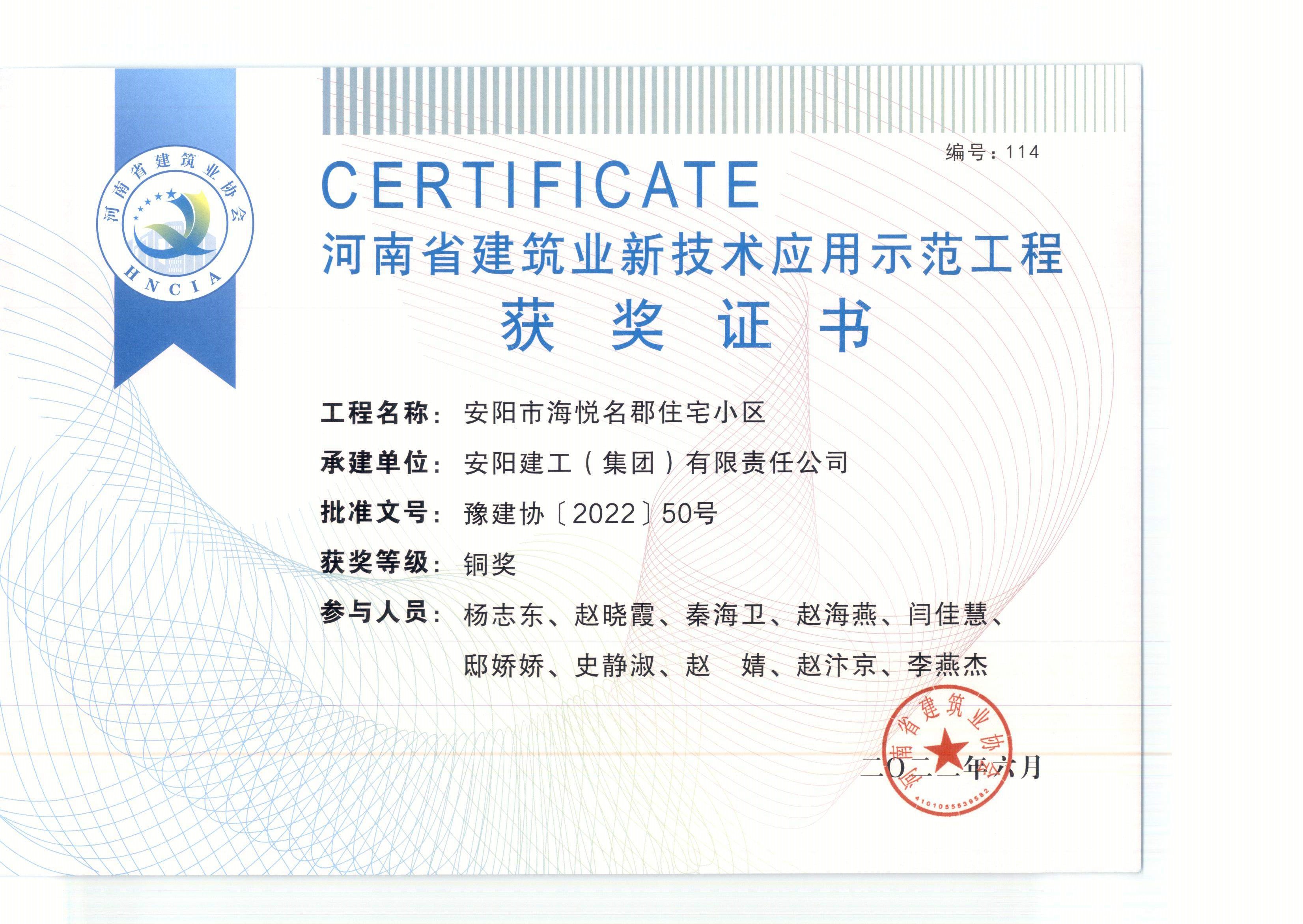 近日,集團公司技術創新成果再創佳績。公司“安陽市海悅名郡住宅小區”、“安陽市御水園商住小區15#、16#樓”、“林州市第三水廠改擴建及配水管網工程”申報的新技術應用示范工程和綠色施工示范工程,通過專家評審驗收。