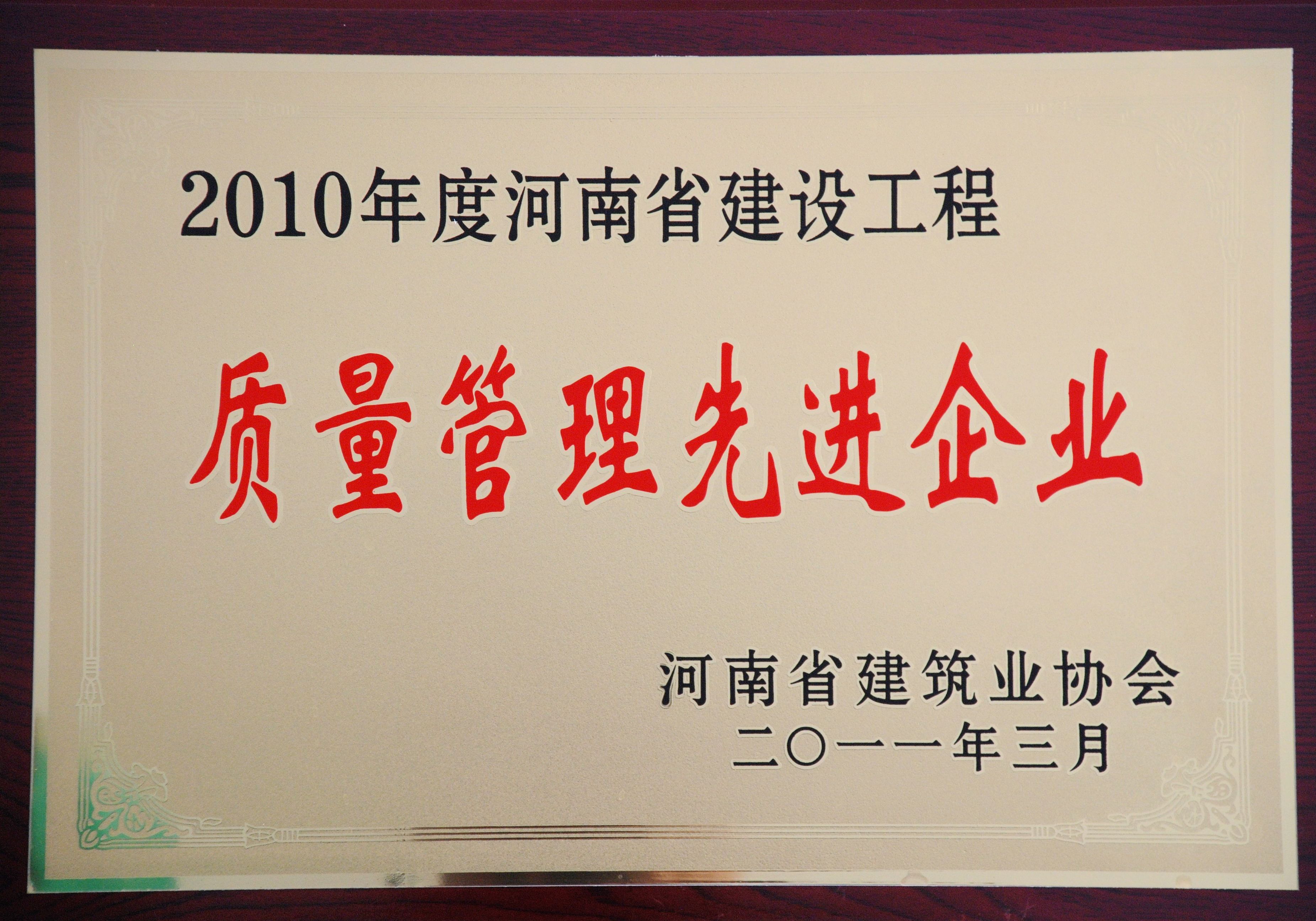 在河南省建筑業協會2011年表彰先進大會上,我公司榮獲2010年度河南省建筑業技術創新先進企業和河南省建筑業先進企業、河南省建筑安全先進企業、河南省建設工程質量管理先進企業等稱號,公司總工程師王蘭蘭教授級高級工程師更被評為河南省建筑企業優秀總工程師。公司項目經理鐘新安、馮志和、王振東、張寶玉、張巍屹榮獲2010年度河南省建筑業企業優秀項目經理榮譽稱號,這些榮譽是對我公司開展科技創新活動和工程質量管理的肯定和褒獎。在今后的工作中,我們將繼續加大科技創新的力度,不斷提高科技創新水平,努力取得新的成績。