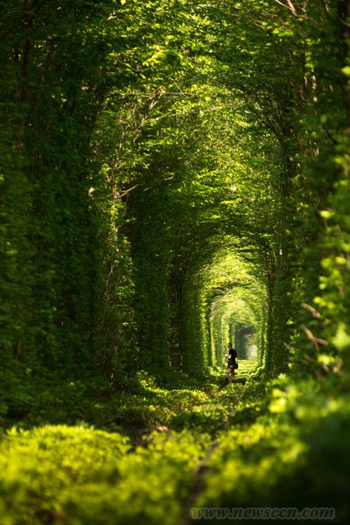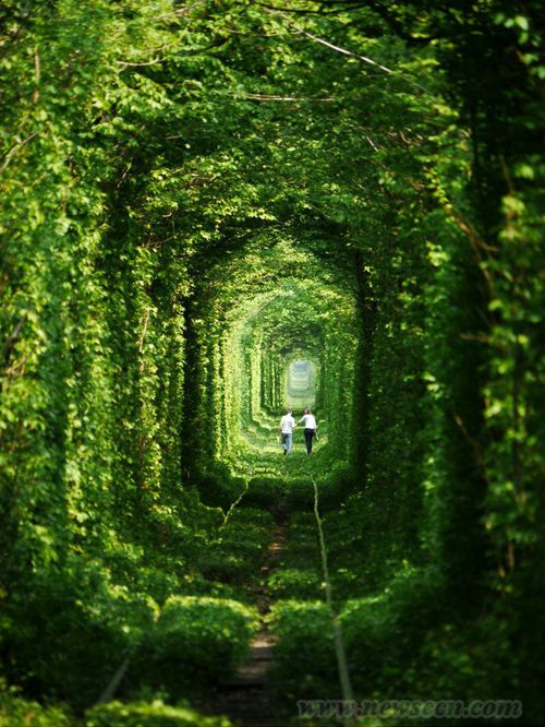 “愛的隧道”位于烏克蘭東部一個名叫克萊旺的小鎮附近,是一段長約3公里的鐵路。但它與眾不同的地方在于,其四周是由樹木及綠色藤蔓圍繞而成,綠色植物構建成了拱形結構,將整條鐵路包裹起來,變成了一條綠色的通道。