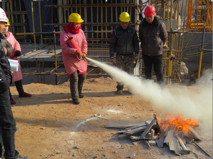 目前冬季氣候干燥,是施工現場火災發生的高發期,一旦發生火災事件會給項目部造成嚴重經濟損失,同時也會給公司造成重大的負面影響。為此,公司工程管理公司組織項目部現場施工人員進行消防安全應急演練,并要求各項目部嚴格按照《建設工程施工現場消防安全技術規范 》要求,加強施工現場的消防安全意識和現場安全教育,全面展開消防隱患自查自糾,通過演練,教育一線員工,做到人人會查改火災隱患、會處置初起火災、會組織引導人員疏散。