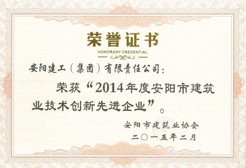 近日,安陽市建筑業協會對2014年度在技術創新工作中獲得優秀企業的單位及優秀總工程師進行了表彰,我公司榮獲“2014年度安陽市建筑業技術創新先進企業”稱號,公司總工程師王蘭蘭同志榮獲“2014年度安陽市建筑業企業優秀總工程師”榮譽稱號。這是我公司連續多年獲得此項殊榮,公司將堅持質量效益發展道路,不斷創新,持續改進,為社會做出更大的貢獻。