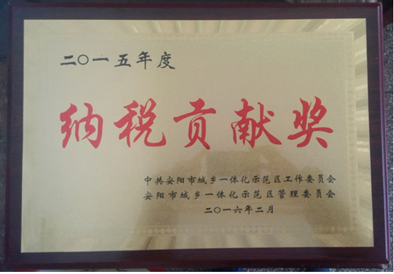 2016年2月15日,新春伊始,安陽城鄉(xiāng)一體化示范區(qū)2016年度工作會議隆重召開,會上安陽市政府副市長唐獻泰、范區(qū)黨工委書記張寶香做出重要講話,總結了過去一年的工作,深入分析當前形勢,表彰先進集體和先進個人,全面安排新的一年經濟社會發(fā)展的任務措施,動員全區(qū)上下進一步統(tǒng)一思想,堅定信心,團結奮進,扎實苦干,為建設美好示范區(qū)而努力奮斗。我公司作為獲獎單位上臺領取了獎牌。會上黨工委、管委會領導同志對先進單位、先進工作者和納稅貢獻企業(yè)進行頒獎表彰。