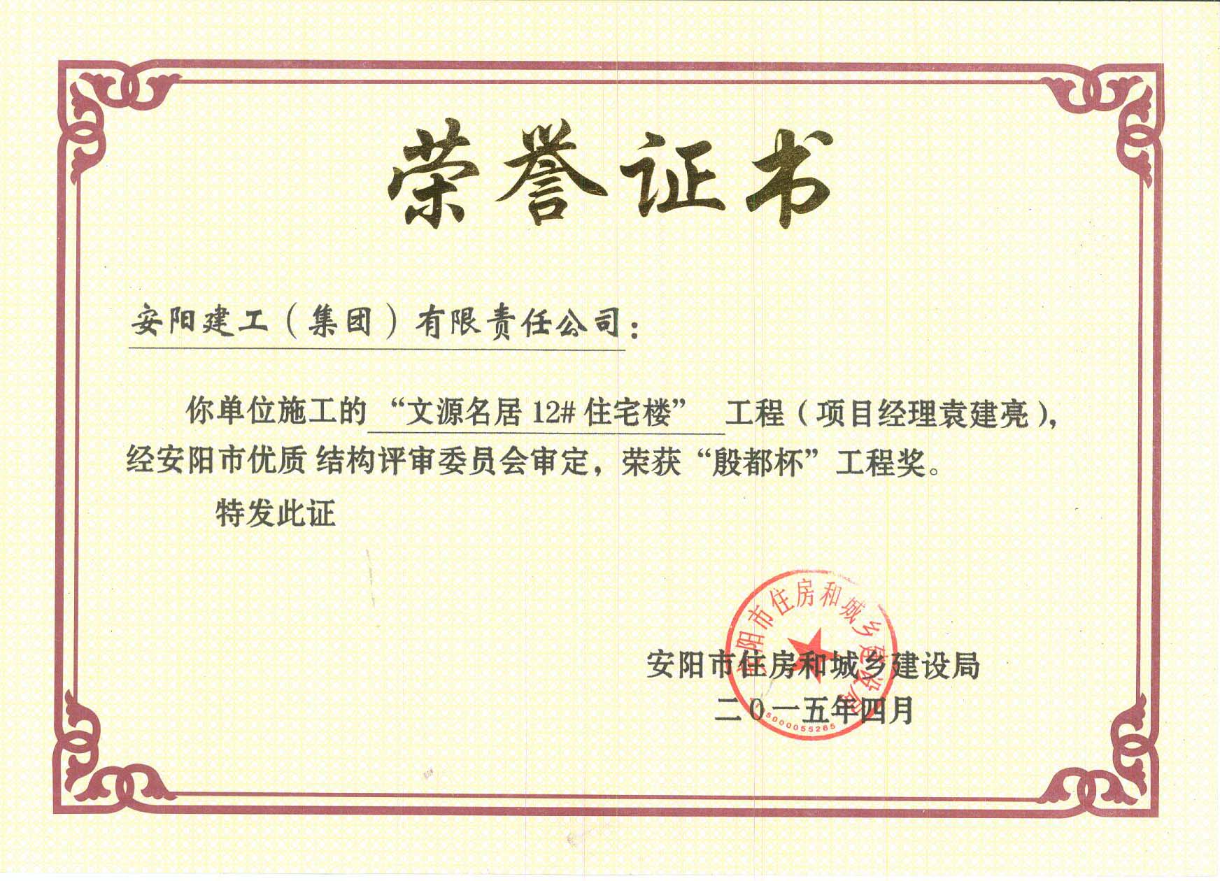 安陽(yáng)建工(集團(tuán))有限責(zé)任公司的前身是安陽(yáng)市建筑工程公司,成立于1952年, 2005年改制為民營(yíng)企業(yè)。六十余年磨礪精兵,譜寫輝煌?,F(xiàn)在的建工已發(fā)展成為由20多家分(子)公司組成,集建筑施工、房地產(chǎn)開發(fā)、科研測(cè)試、材料供應(yīng)、勞務(wù)管理、電梯安裝、裝飾裝璜、預(yù)制構(gòu)件、商品混凝土、混凝土外加劑、機(jī)電設(shè)備安裝、建筑節(jié)能為一體的現(xiàn)代化集團(tuán)。具有國(guó)家一級(jí)建筑施工總承包資質(zhì)和市政公用工程總承包一級(jí)資質(zhì)...