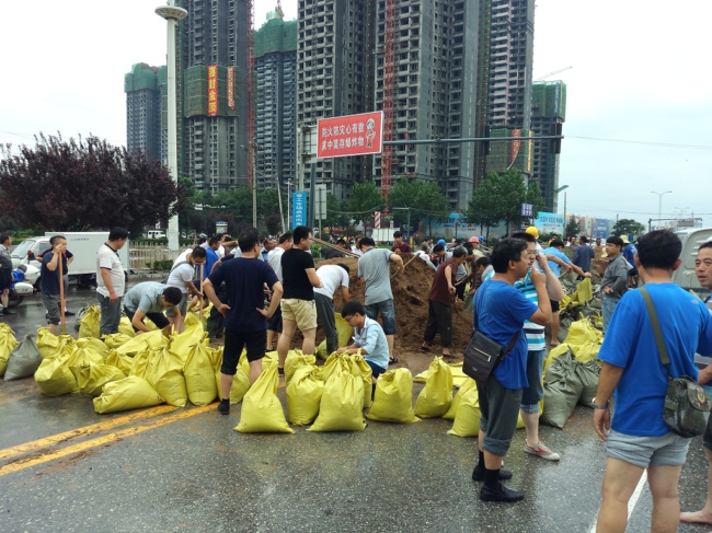 安陽(yáng)市住建局在了解到情況后,迅速組織安陽(yáng)市各建筑公司前往封堵涵洞缺口。海悅名門項(xiàng)目部在接到任務(wù)后迅速組織項(xiàng)目上所有青年大概二十余人,在項(xiàng)目經(jīng)理王振東的帶領(lǐng)下成立青年突擊隊(duì)前往現(xiàn)場(chǎng)救援。