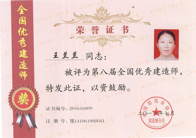 此次會議上,公司總工程師王蘭蘭同志被評為“第八屆全國優秀建造師”榮譽稱號。公司將更加重視科技進步與技術創新工作,積極開展科研攻關,為建筑業的持續健康發展做出更大的貢獻。