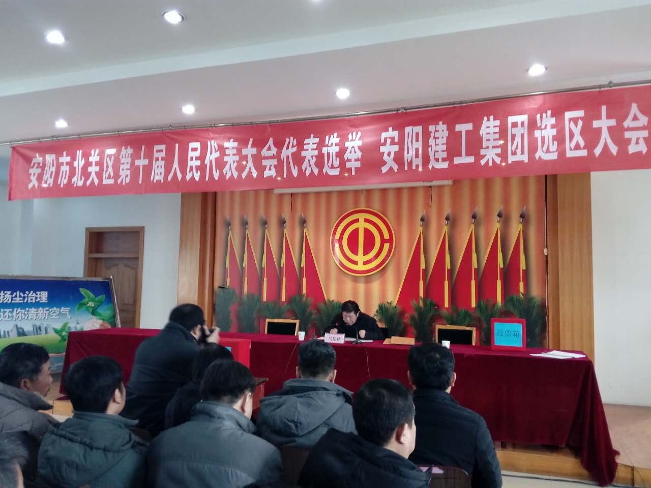 2017年2月22日上午8:20,安陽市北關區第十屆人民代表大會代表選舉安陽建工集團選區大會于公司四樓會議室舉行,本次選舉分現場及場外流動票箱兩種選舉形式。現場選舉會由集團公司黨委副書記馬松林同志主持,會上,馬松林同志向現場所有選民宣讀了選舉辦法及候選人信息,現場選民采取不記名投票方式一一投出自己神圣的一票;場外流動票箱處,各位選民也積極投出自己的選票,選舉產生了北關區第十屆人民代表大會代表,經北關區選舉委員會審核,符合選舉法和區選舉細則的有關規定,確認選舉結果有效。