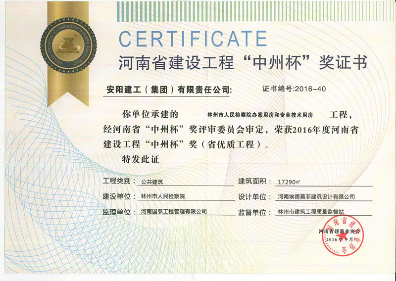 推動作用。2016年度河南省建設工程 “中州杯”獎評審工作已經結束,經過評