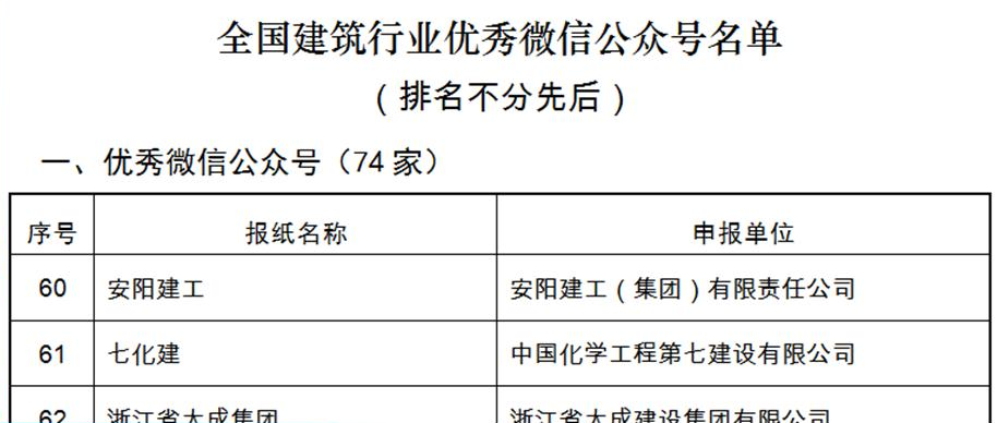 我公司榮獲"全國建筑行業優秀微信公眾號”榮譽稱號