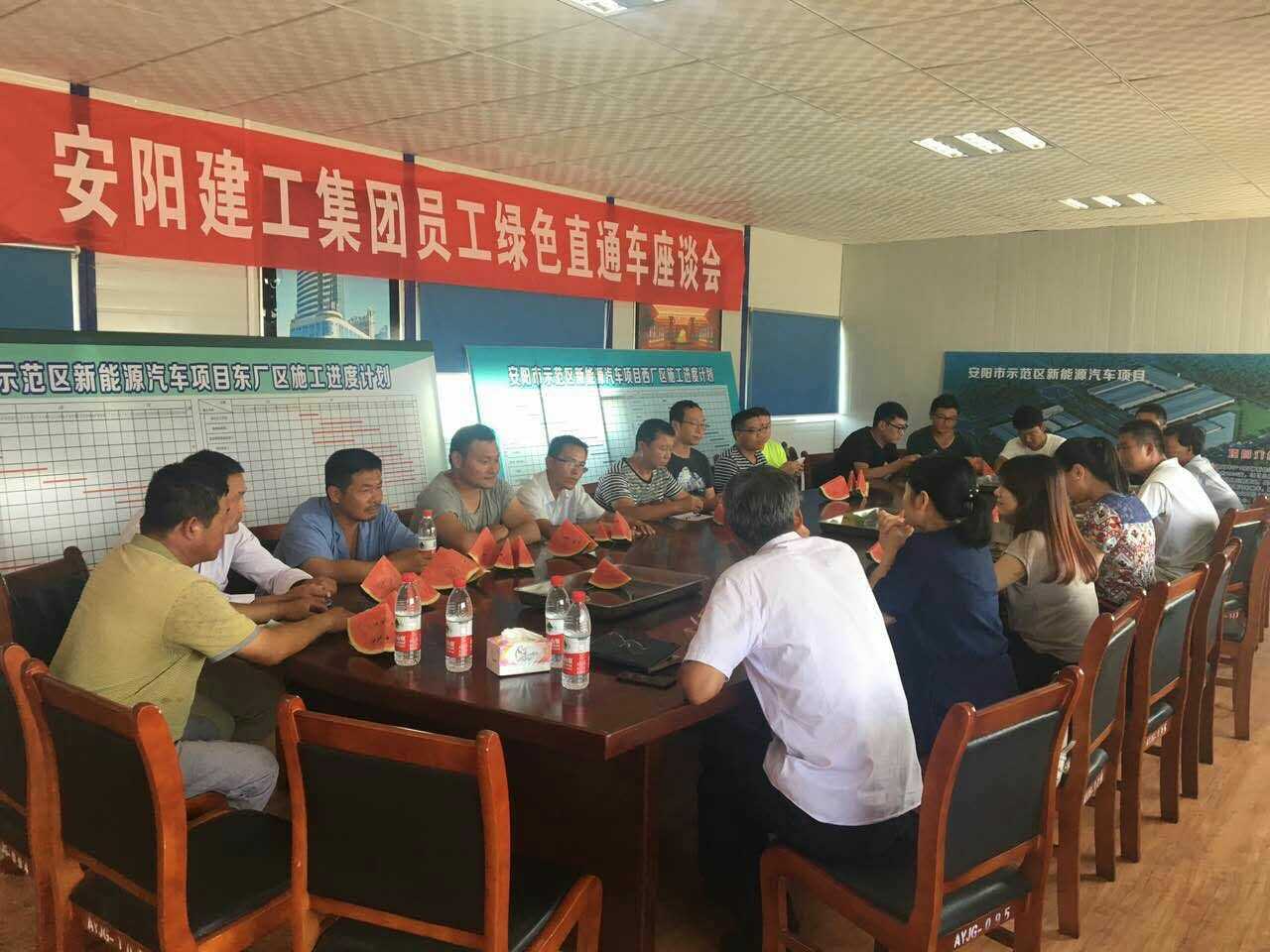 2017年7月7日下午4點,人力資源組織第四次員工綠色直通車座談會走進新能源汽車和7S店項目部,了解員工工作情況,關注員工心里動態,傾聽員工真實聲音,解決員工實際困難,搭建員工與公司之間溝通的綠色橋梁。