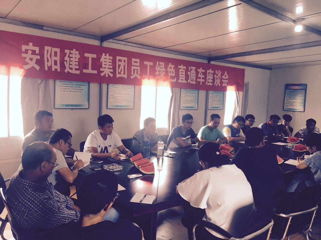2017年7月28日,員工綠色直通車座談會(第五期)到達(dá)精密二期和產(chǎn)業(yè)小鎮(zhèn)項(xiàng)目部。搭建員工與公司之間溝通的綠色橋梁,幫助員工切實(shí)解決工作、生活中的實(shí)際問題。提高員工企業(yè)歸屬感,打造線上總經(jīng)理信箱,線下綠色直通車,關(guān)愛員工我們在行動!此行公司副總盧麗娜、人力資源部部長肖丹等4人來到項(xiàng)目現(xiàn)場。座談會首先由盧經(jīng)理向參加座談會的人員介紹本次座談會的意義并鼓勵大家提出自己的想法、困難和管理方面的建議。
