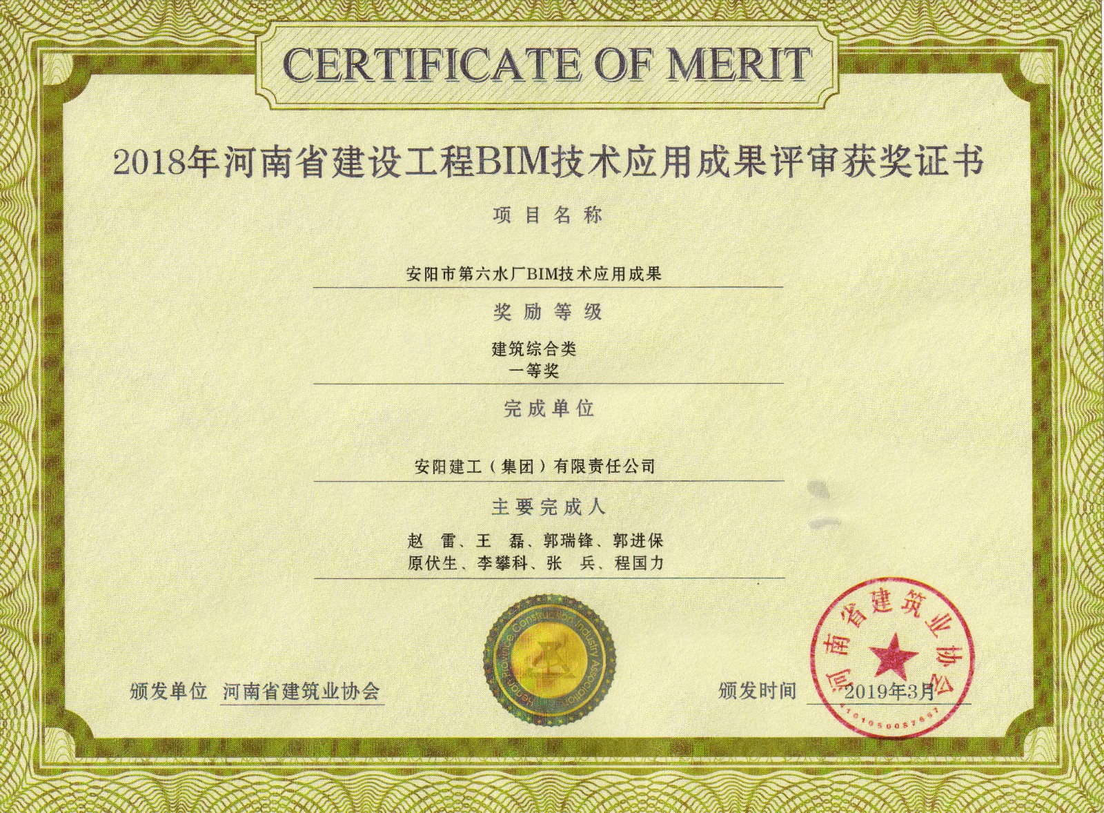 我公司安陽市第六水廠BIM技術應用成果榮獲18年省一等獎