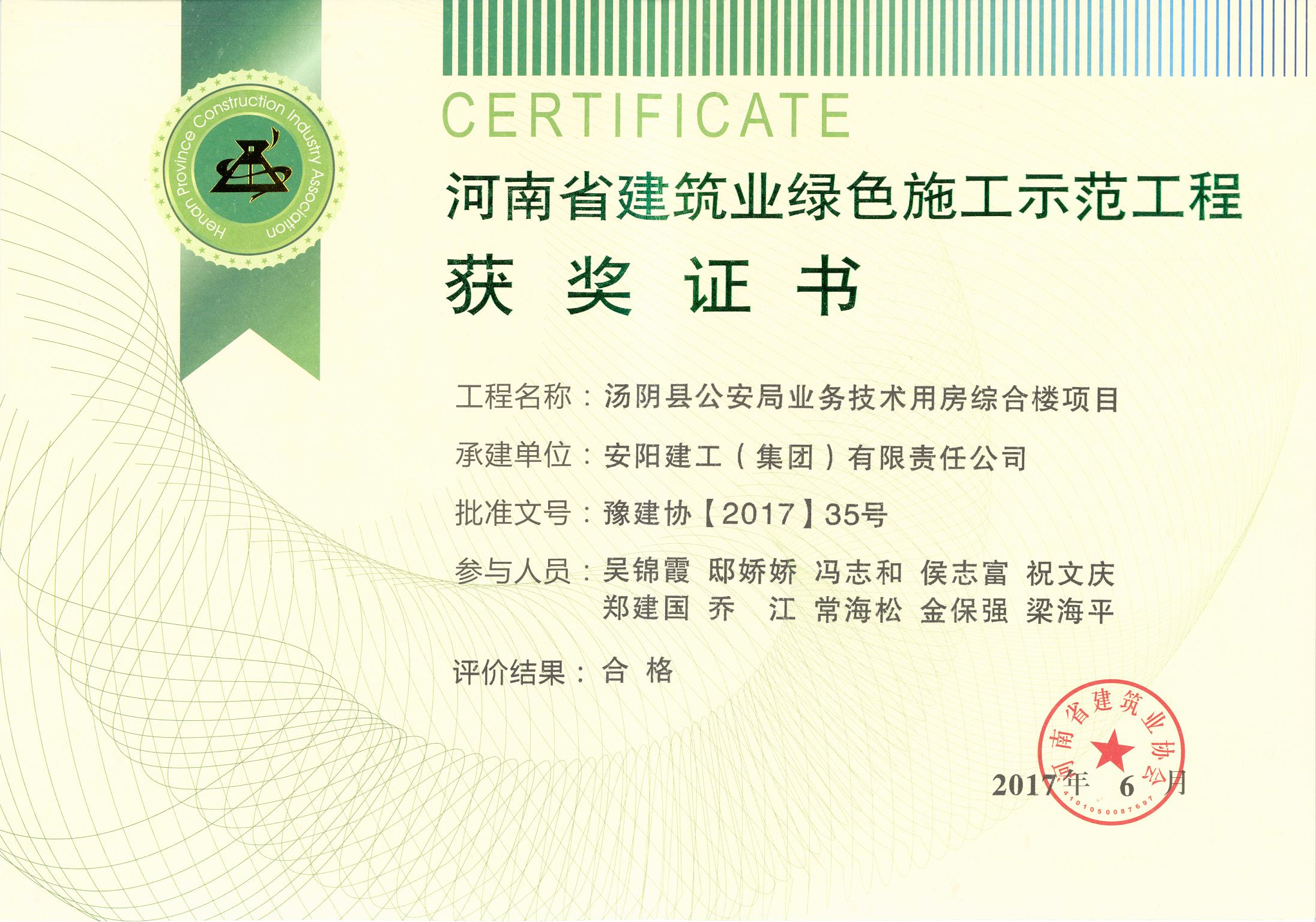 我公司湯陰縣公安局綜合樓項目榮獲17年省建筑業綠色施工示范工程
