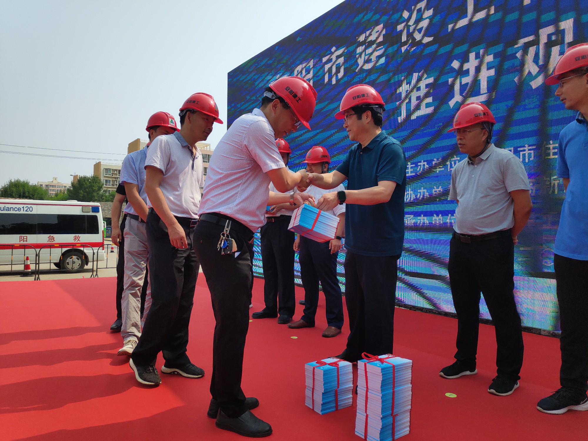 6月24日上午,由安陽市住房和城鄉(xiāng)建設(shè)局主辦,高新區(qū)建筑工程管理處協(xié)辦,安陽建工集團承辦的“安陽市建設(shè)工程質(zhì)量安全手冊推進觀摩會”在我公司海悅名郡項目施工現(xiàn)場順利召開。安陽市住建局黨組成員、總工程師許會生,安陽市住建局工程質(zhì)量安全監(jiān)管科科長李奇琪,安陽市建筑工程質(zhì)量監(jiān)督站站長張向民,安陽市建設(shè)安全監(jiān)督站站長王進現(xiàn),安陽市市政工程質(zhì)量監(jiān)督站站長李虎,各縣(市、區(qū))住建局主管副局長、質(zhì)監(jiān)站、安監(jiān)站站長等領(lǐng)導(dǎo)出席。集團公司董事長謝海如親臨現(xiàn)場觀摩指導(dǎo)、副總經(jīng)理劉民躬身一線督促安排。市各建筑工地的建設(shè)、施工、監(jiān)理單位相關(guān)人員約1700余人參加了此次觀摩活動。