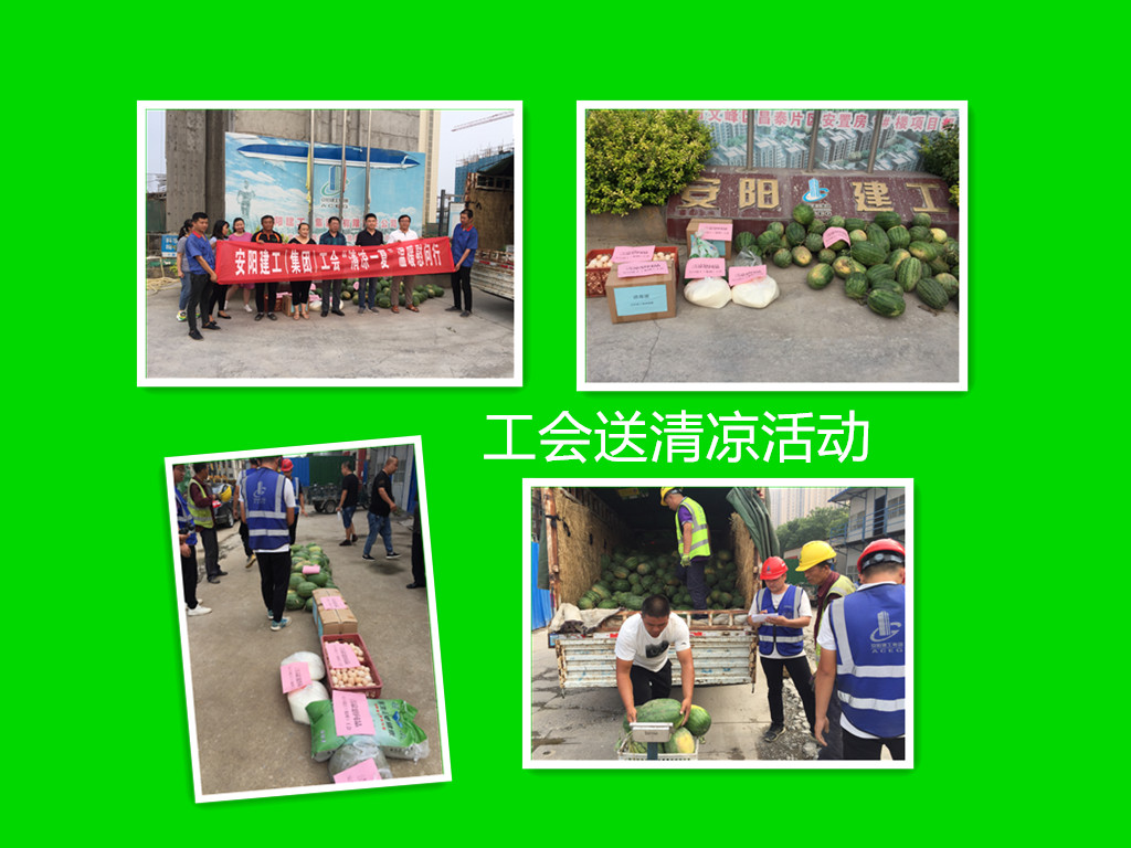 “工會送西瓜來嘍!”伴隨著工人的聲音,裝滿西瓜的汽車駛進了項目部大門口,公司工會主席馬松林、副主席聶磊在公司工程部、項目部陪同下,帶著香甜的西瓜、營養(yǎng)的雞蛋、溫暖的綠豆、甜滋滋的白糖、殺菌的消毒液等物品開始了今年的“清涼一夏”溫暖慰問行!