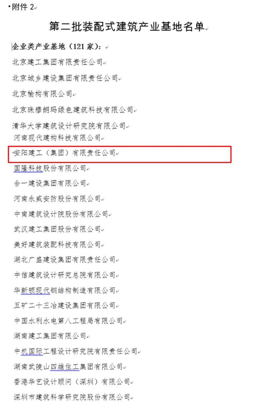 安陽建工(集團)有限責任公司被評為國家“第二批裝配式建筑產業基地