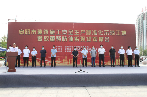 2021年6月20日上午,安陽市建筑施工安全生產標準化示范工地暨雙重預防體系建設現場觀摩會在安陽建工(集團)有限責任公司海悅國際大廈項目舉行。此次觀摩會分析研判建筑工程安全生產形勢,強化安全生產標準化建設,持續深化建筑施工雙重預防體系建設,推進安全生產專項整治三年行動和“安全生產月”活動,為全市安全生產形勢總體穩定提供示范引領和支撐保障作用。