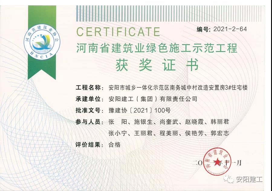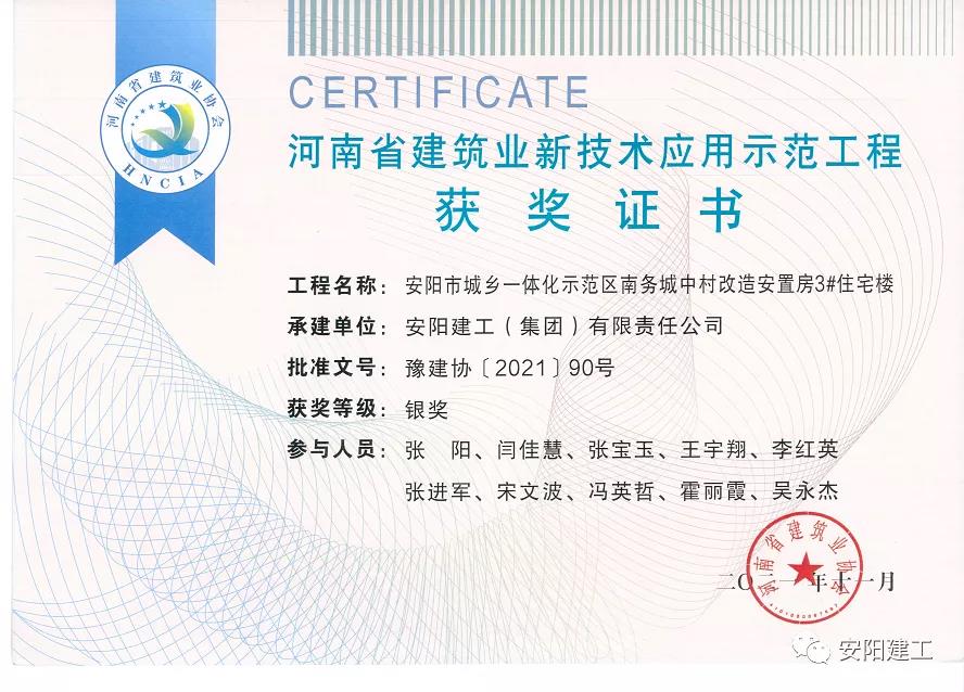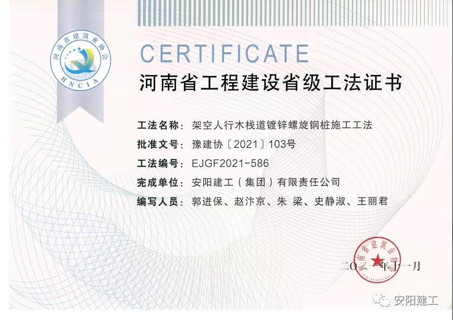 近日,集團公司技術創新成果再創佳績。公司申報的《架空人行木棧道鍍鋅螺旋鋼樁施工工法》順利通過河南省建筑業協會專家評審,榮獲2021年“河南省省級工法”。與此同時,公司“安陽市城鄉一體化示范區南務城中村改造安置房3#住宅樓項目”結項申報的新技術應用示范工程和綠色施工示范工程,通過專家評審驗收,榮獲“河南省建筑業新技術應用示范工程獲銀獎”、“河南省建筑業綠色施工示范工程”。