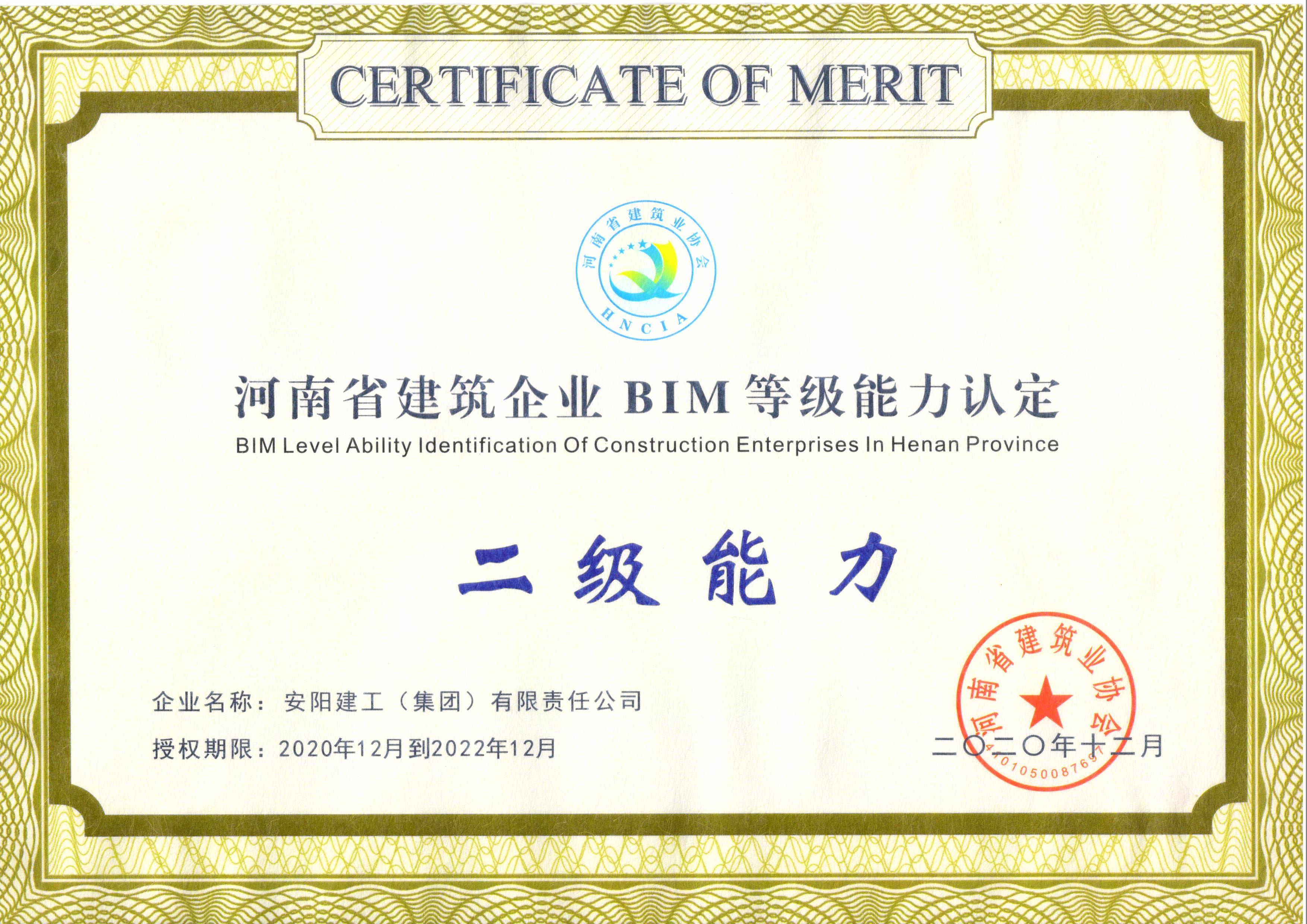我公司榮獲2020年河南省建筑企業“具備BIM技術應用能力”等級認定二級企業