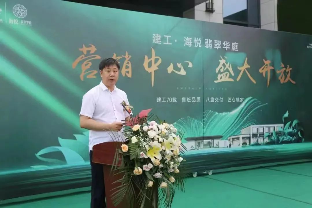 在主持人的隆重邀請下,集團公司總經理謝飛上臺致辭,他首先表達了對在座嘉賓的感謝,更闡述了70載建工集團與安陽同血共脈,多項地標建筑與安陽共成長。同時他還著重表示此次海悅翡翠華庭以打造綠色人居為居住理念,以一方園林盛景,敬獻安東舒適人居。
