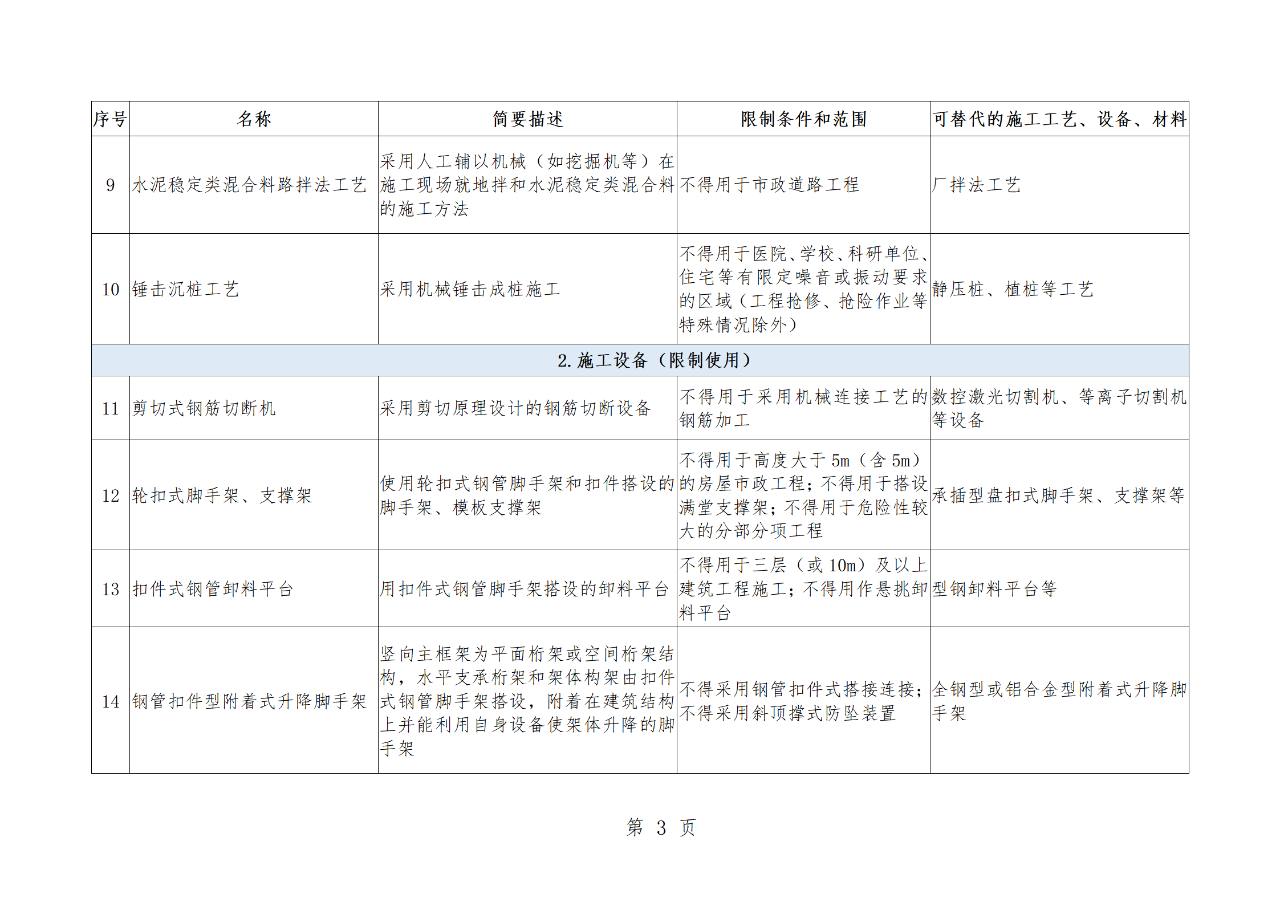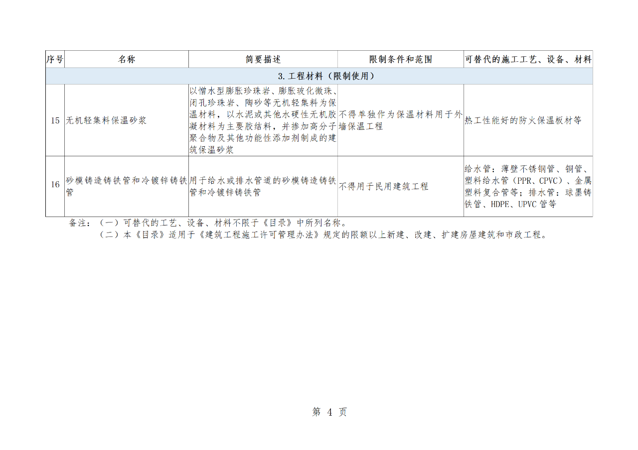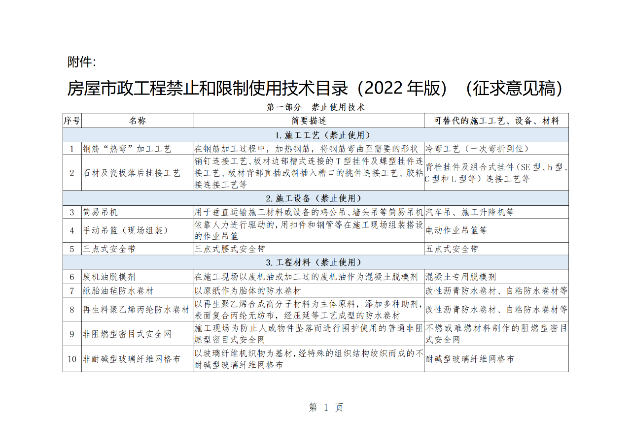 附件:房屋市政工程禁止和限制使用技術目錄(2022年版)(征求意見稿)