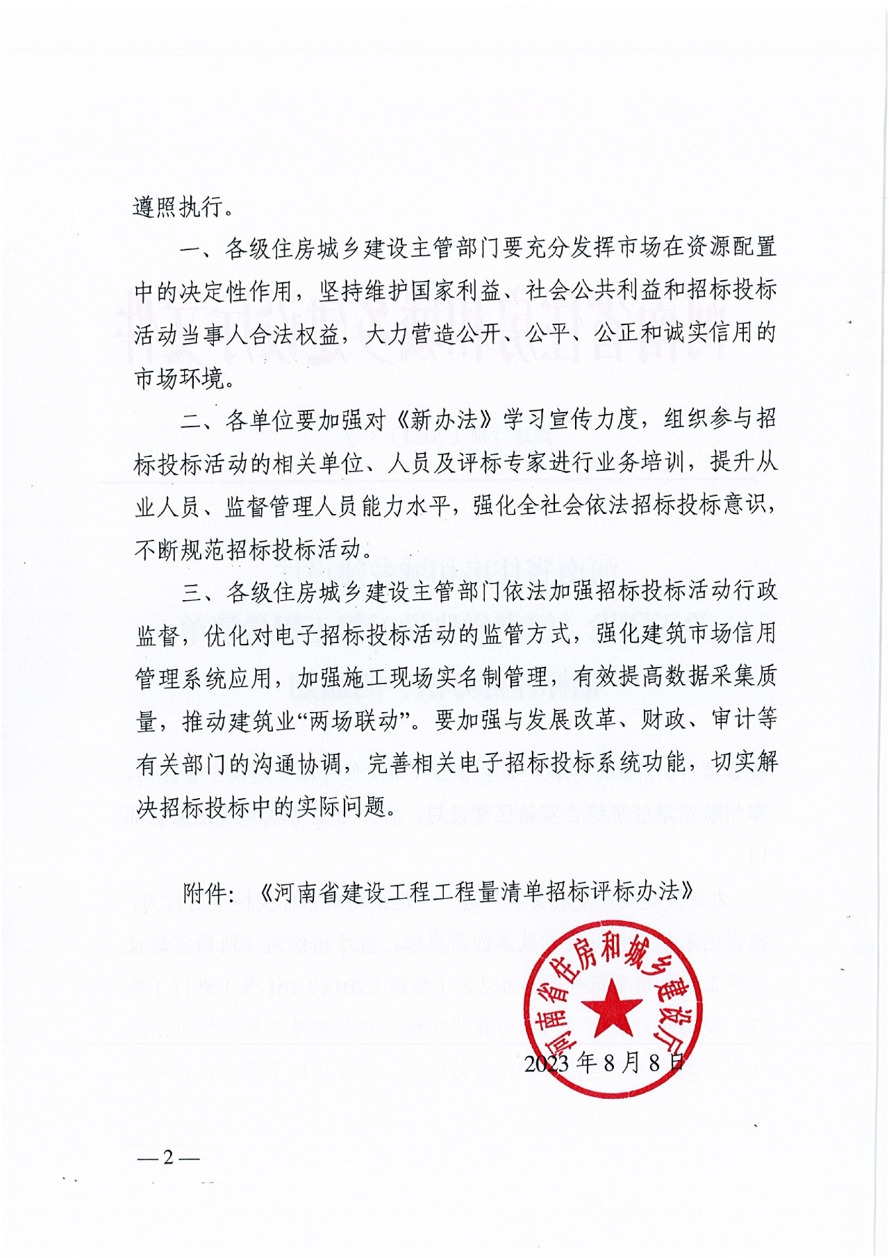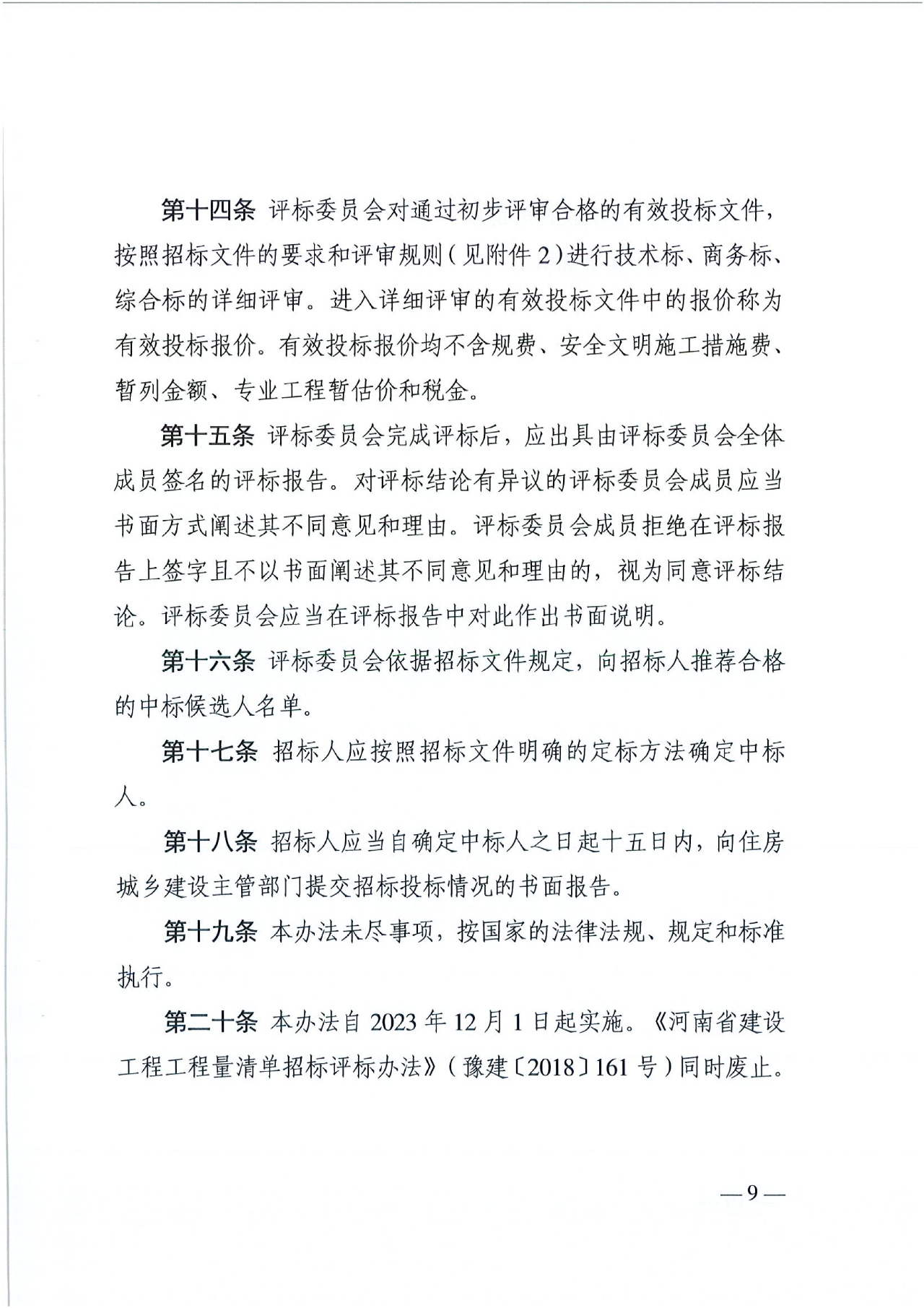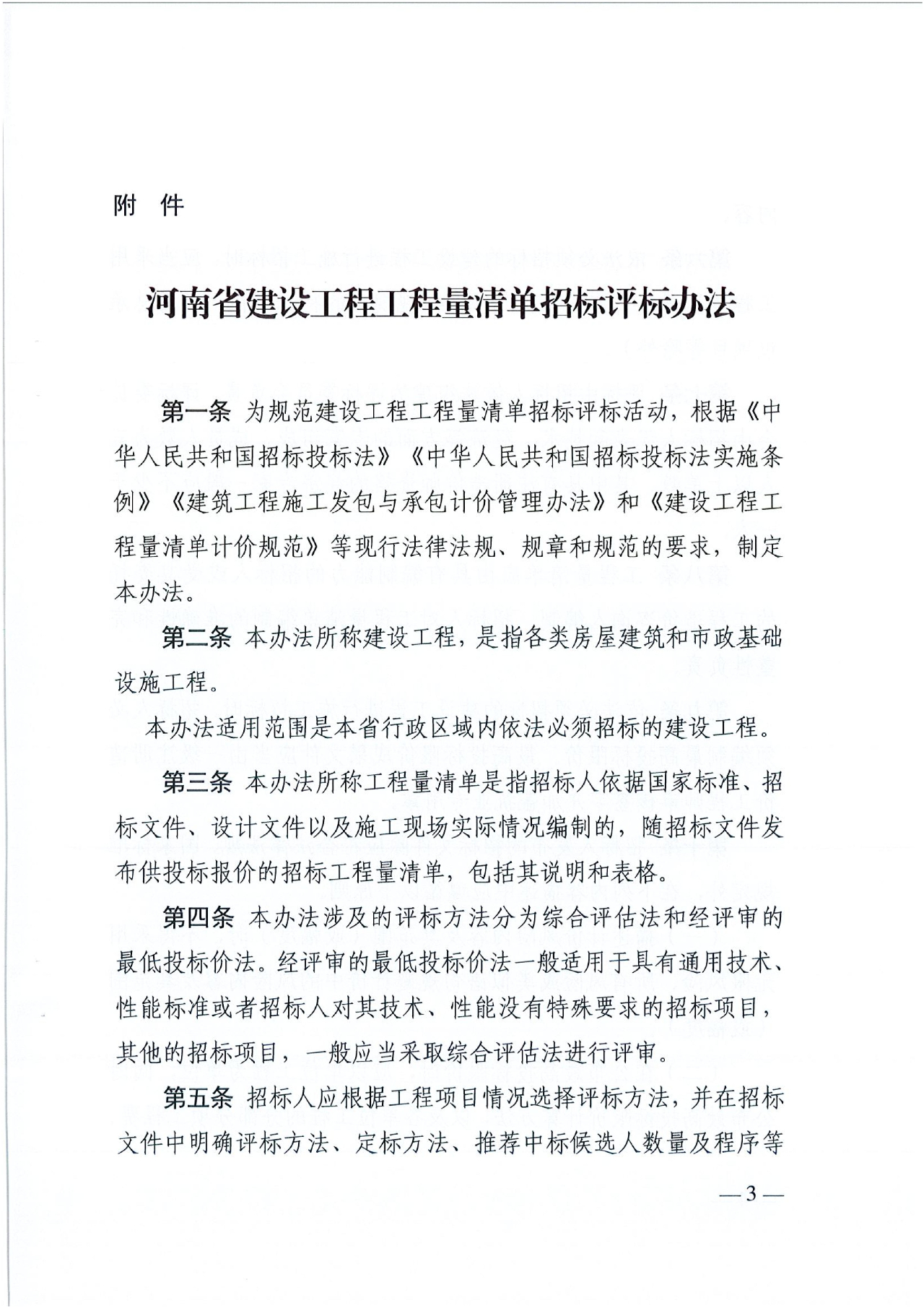 河南省住建廳印發:河南省建設工程工程量清單招標評標辦法