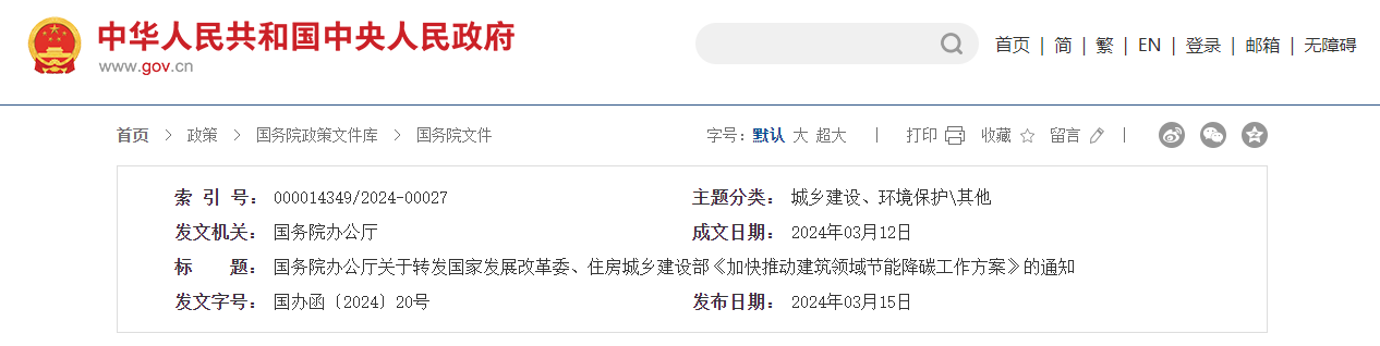 國家發展改革委、住房城鄉建設部《加快推動建筑領域節能降碳工作方案》已經國務院同意,現轉發給你們,請認真貫徹落實。
