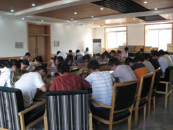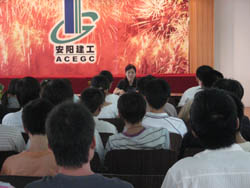 劉艷軍經(jīng)理講公司管理制度 王蘭蘭總工程師講工程技術(shù)知識(shí) 盧麗娜經(jīng)理講職業(yè)引導(dǎo) 辦公室李樹紅主任講公司企業(yè)文化 認(rèn)真記課堂筆記 考 試 我公司委托高等院校培養(yǎng)的60名學(xué)生,7月17日到公司報(bào)到,提前進(jìn)入實(shí)習(xí)階段。為了使學(xué)生能夠在最短的時(shí)間內(nèi)了解公司的概況,完成學(xué)習(xí)的實(shí)習(xí)任務(wù),實(shí)現(xiàn)從學(xué)生到員工的角色轉(zhuǎn)變,快速達(dá)到崗位要求,給企業(yè)注入新鮮血液,公司人力資源部組織本批學(xué)生進(jìn)行了為期五天的崗前培訓(xùn)。 培訓(xùn)內(nèi)容重點(diǎn)從職業(yè)引導(dǎo)、企業(yè)文化、管理制度、工程質(zhì)量、安全、測量、預(yù)算、技術(shù)資料、材料管理等方面進(jìn)行,培訓(xùn)結(jié)束后,對培訓(xùn)內(nèi)容進(jìn)行了考試。培訓(xùn)老師由人力資源部、辦公室、企管辦、工程管理部、技術(shù)中心、預(yù)算部、材料設(shè)備部等部門的領(lǐng)導(dǎo)及專業(yè)技術(shù)人員組成。每位老師都做了充分的準(zhǔn)備,講課內(nèi)容豐富,課堂氣氛活躍,學(xué)生們聽課認(rèn)真,受益匪淺。 培訓(xùn)結(jié)束前,60名學(xué)生根據(jù)其所學(xué)專業(yè)知識(shí)及其綜合情況,分別由相關(guān)部門安排在安全員、質(zhì)檢員、材料員、預(yù)算員、資料員、測量員崗位上實(shí)習(xí)。9月21日下午,崗位所在單位工程管理部、材料設(shè)備部、預(yù)算部、技術(shù)中心、預(yù)制構(gòu)件廠的領(lǐng)導(dǎo)與學(xué)生們見面。