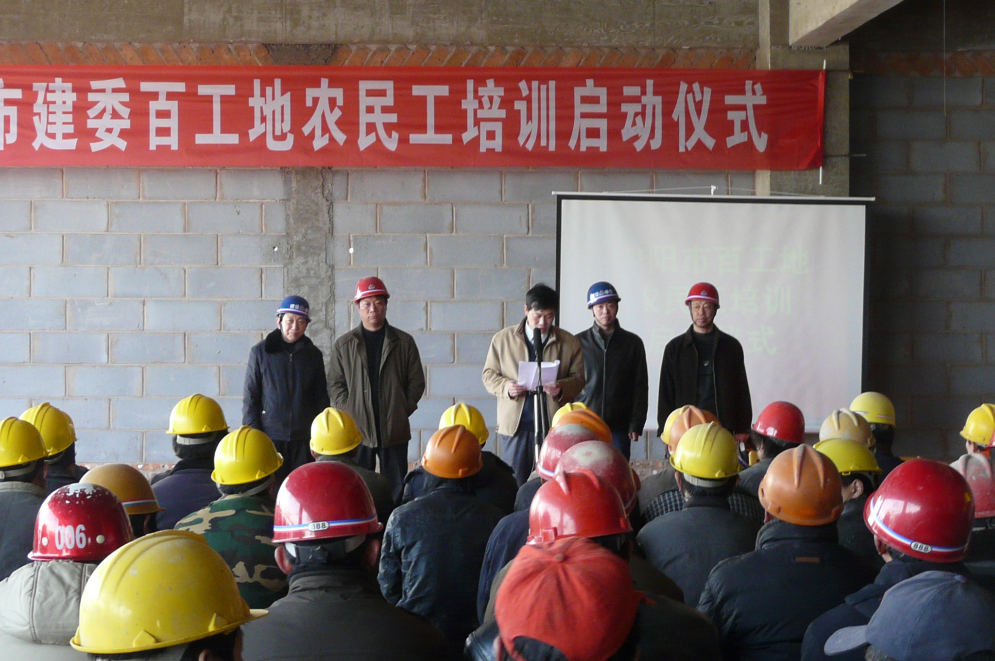 2月20日上午,由安陽市建委組織開展的“百村百工地”建筑業農民工培訓活動啟動儀式在我公司農業大廈工地農民工培訓學校舉行,市建委主任侯津琪、總工劉恒磊同志出席啟動儀式。自公司農民工培訓學校開辦以來,圍繞建筑市場要求,對以農民工為主的勞務作業人員開展定向培訓,提高建筑農民工業務技能和從業素質,為公司工程創優奠定了基礎。公司將以此次活動為契機,配合市建設主管部門,對農民工開展建筑行業11工種的業務技能培訓,既使農民工學到有用的技能,又提高公司安全生產和質量水平,為公司建設品牌工程輸送人才。