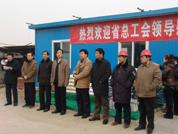 元月10日(周日)上午,省總工會及市總工會領(lǐng)導(dǎo)冒著嚴(yán)寒,帶著精美的羽絨服、精制的大米、白面和美味的豬肉及《農(nóng)民工知識讀本》來到我們公司施工的安陽市電子信息學(xué)校工地,向建設(shè)一線職工和在這里務(wù)工的農(nóng)民工送去了溫暖,送去了工會組織對農(nóng)民工的深切關(guān)懷。