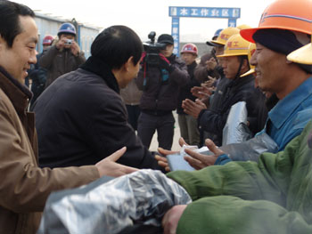 省總工會副主席王永領(lǐng)向辛勤工作在建設(shè)一線的廣大職工、農(nóng)民工表示了親切的慰問。他說,隨著改革開放和工業(yè)化、城鎮(zhèn)化進(jìn)程加快,越來越多的農(nóng)村富余勞動力進(jìn)入城市務(wù)工,辛勤勞作在城市的各個(gè)行業(yè)和不同崗位,為促進(jìn)城市的繁榮作出了貢獻(xiàn),成為推動經(jīng)濟(jì)和社會發(fā)展不可忽視的力量。總工會作為廣大職工的“娘家”,始終將農(nóng)民工的冷暖掛在心上,這次送來棉衣和知識讀本,就是希望農(nóng)民工能夠安全地過冬,愉快地過節(jié)。王主席希望廣大農(nóng)民工朋友能夠不斷提高文化素質(zhì)和業(yè)務(wù)技能,在各自的崗位上創(chuàng)造出新的業(yè)績,為把安陽建設(shè)成為豫北區(qū)域性中心強(qiáng)市作出新的貢獻(xiàn)。